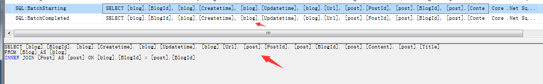 SELECT [blog].[BlogId], [blog].[Createtime], [blog].[Updatetime], [blog].[Url], [post].[PostId], [post].[BlogId], [post].[Content], [post].[Title]