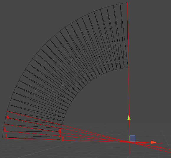 我們假設圓心在原點,数字0-1所在的線為180度線。\(\color{#1E90FF}{Increment}\) = \(\color{#1E90FF}{DrawArchDegrees}\)/\(\color{#1E90FF}{NumberOfSides}\)就是線與線之間的角度。每條線的角度可以由\(\color{#1E90FF}{180-Increment*i}\)得到。i為第幾條線。